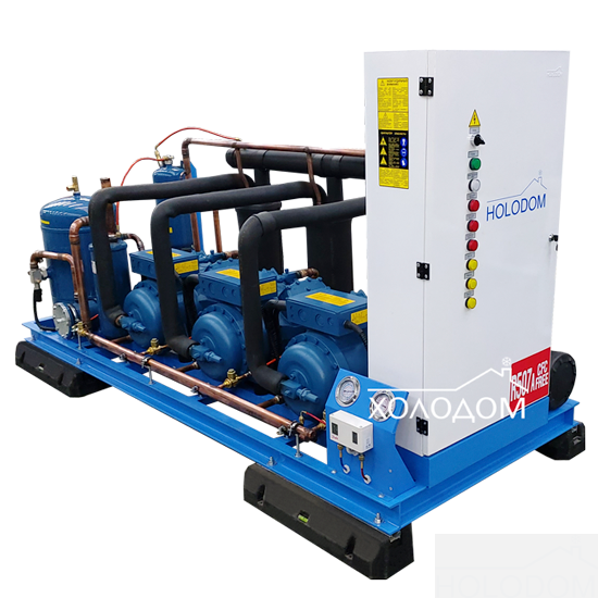 Агрегаты центрального холодоснабжения широко применяются для супермаркетов, магазинов средней торговой площади, продовольственных складов, хранилищ овощей и фруктов, а также предприятий по переработке и производству продуктов питания (мясокомбинаты, рыбозаводы, предприятия молочной промышленности и т.д.). Или холодильный терминал, включающий в себя несколько камер. Холодильная установка управляется с помощью электронного блока. Качество сборки холодильных агрегатов гарантировано тем, что процесс сборки происходит в заводских условиях, а не там, где он будет эксплуатироваться. Сборка в цеху, с использованием профессионального оборудования, обеспечивает высокую степень герметизации, эффективную очистку и осушку агрегата. В продажу агрегаты поступают герметично запечатанными.